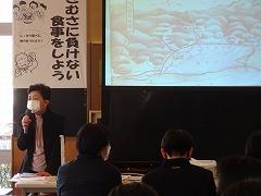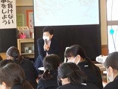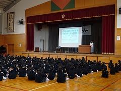 ↓「最後に自分の命は自分で守る」お話をしました。用水の近くには決して近寄らないでください。雪道の安全、飛び出しはしない、コロナ感染防止も継続してください。