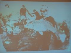 ↑「干拓途中には、こんな大きな魚も発見されたのですよ。」「分かりやすく教えていただき、ありがとうございました。おかげで、河北潟をさらに身近に感じることができました。」森先生、貴重な学びの機会をいただきましてありがとうございました。