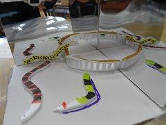 ↓5年図画工作 ミラクル!ミラーステージ 鏡に映る見え方を利用して作品を工夫しました。今日は作品の鑑賞会です。