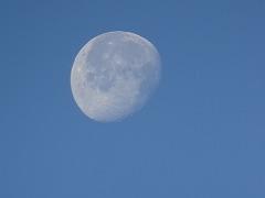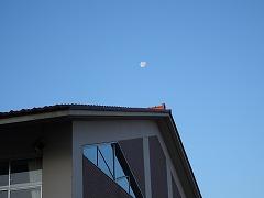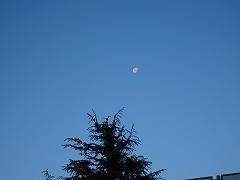 今日はすっきりとした青空でした。南西の空には下弦の月が残っていました。今日の月齢は19日、お昼の10時37分に西の空に沈みます。