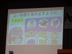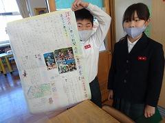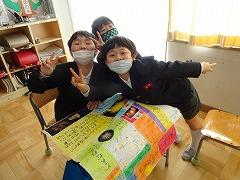 学校にも来てくださいました。横断旗には、「あわてんぼうのサンタクロース」ということだそうで、6年生へのたくさんのお祝いが書かれています。「阿波てるな」ということで四国にちなんだメッセージついています。