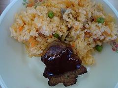 ↓今日はうれしいクリスマス給食です。メニューはチキンライス、もみの木ハンバーグ、花野菜サラダ、コンソメジュリアン、サンタさんのケーキです。チキンライスは鶏肉にマッシュルーム、玉ねぎ、にんじん、にんにく、パプリカ、トマト、グリンピースが入って、香り高いチキンライスでした。ケーキは食物アレルギー物質(卵)が入っていないケーキを試食しました。とてもおいしかったです。ごちそうさまでした。