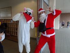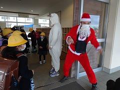 ↓子供たちを楽しませようと、サンタさんとリラ熊さんが来てくださいました。驚きと笑顔が玄関に広がりました。ありがとうございます。