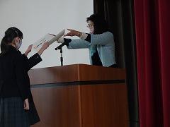 ↓2学期終業式を行いました。初めに表彰伝達です。交通安全ポスターの作品の優秀な児童を表彰しました。県知事様からの賞状です。