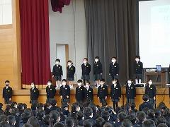 ↓1年生の有志の児童が、小学校で初めて覚えた校歌を披露してくれました。伸びのある澄んだ歌声で大変上手でした。ありがとうございます。