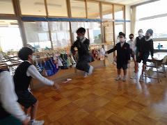 ↑6年 「パプリカ」の曲に合わせてリズム、拍を感じとる学習です。