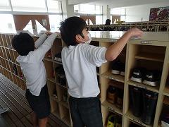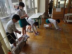 ↓大掃除をしました。自分の下足箱も窓も教室や廊下もきれいにして、気持ちよく新年を迎えられるようにしました。