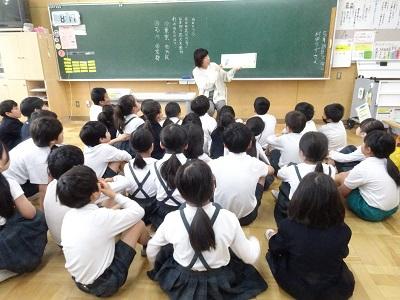 高学年でもやはり生の声で読んでもらう絵本は,心に響きます。どの子もよい表情で聴き入っていました。