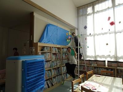 図書ボランティアの皆さんが,図書館掲示の模様替えをしてくださいました。