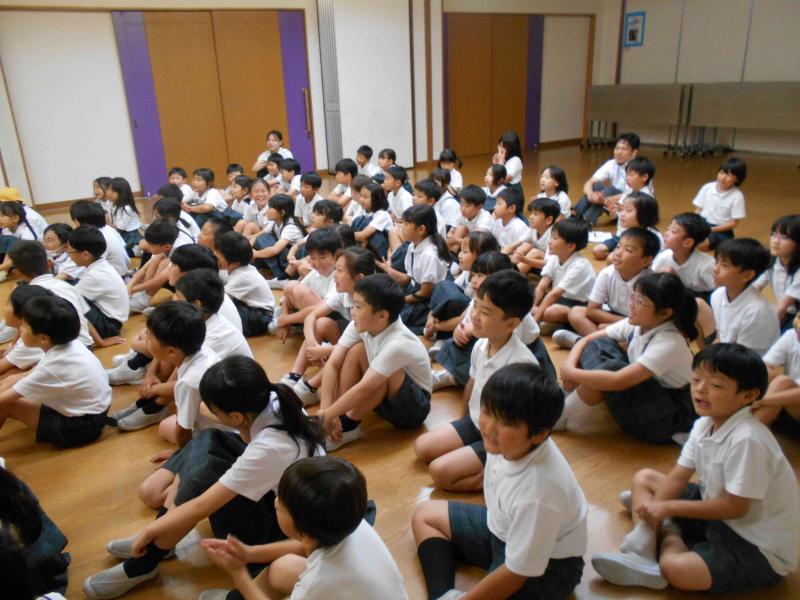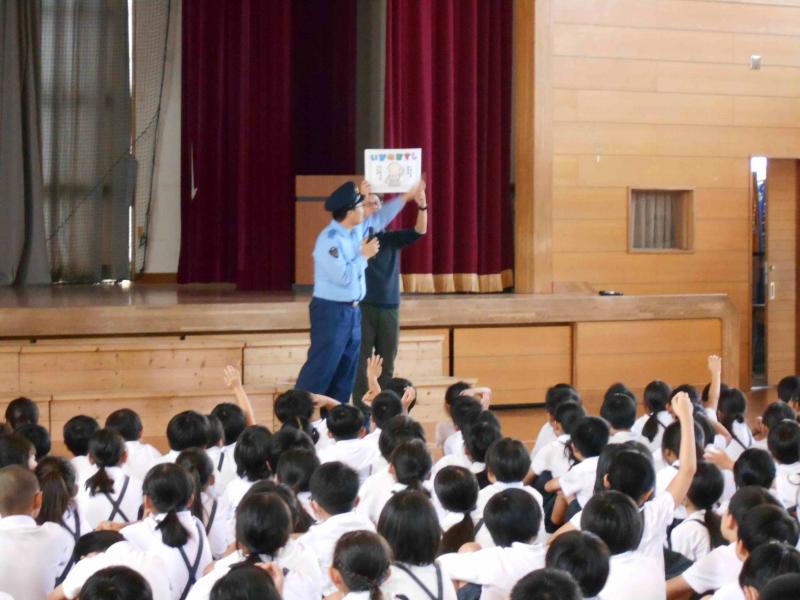 警察の方が来てくださり,不審者が来たときはどうしたらいいかを教えてくださいました。子供たちは,「いかのおすし」を交えたお話を真剣に聞いていました。