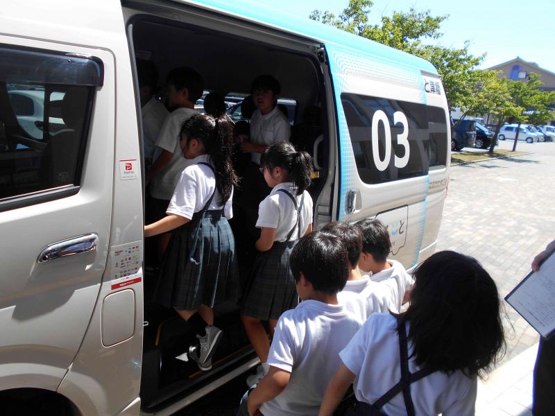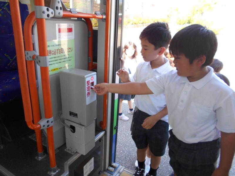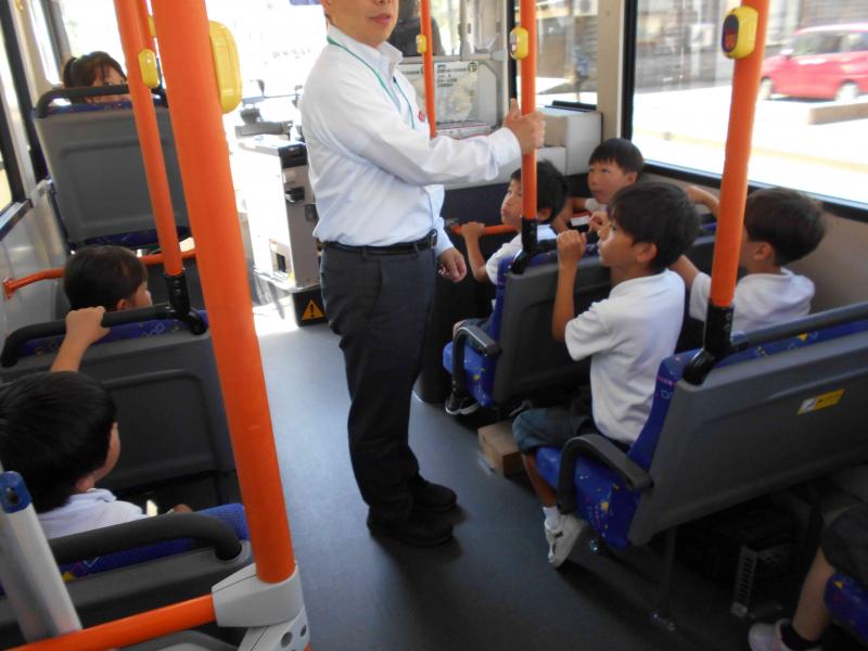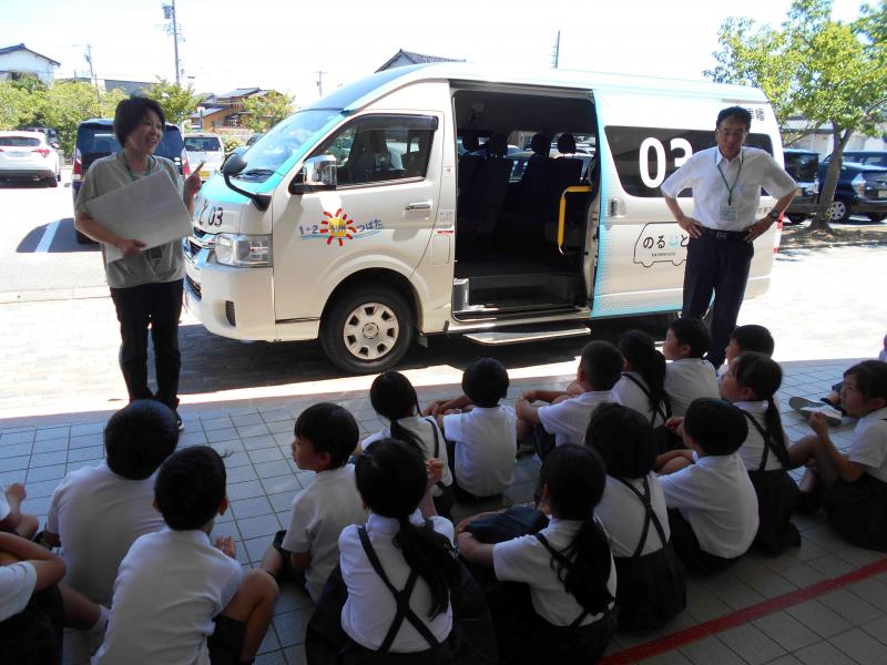 公共の乗り物の使い方を学ぼう!ということで、バスの乗車の仕方や町で利用できる「のるーと」についての説明をして頂きました。