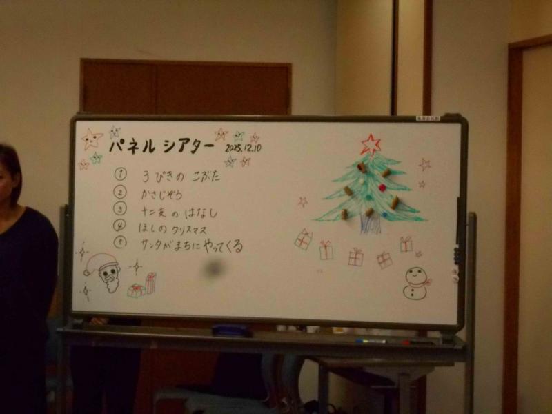 「ほしのクリスマス」「サンタがまちにやってくる」 では照明を落とし、イルミネーションやウインドチャイム、鉄琴などを使い、素敵なクリスマスの雰囲気でパネルシアターをして下さいました!
