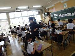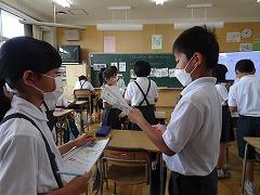 ↓4年外国語活動 自分のおすすめの遊びに誘う言い方を学習し、英語で実際に誘っているところです。外国語活動は、ALTの先生と一緒に学習します。