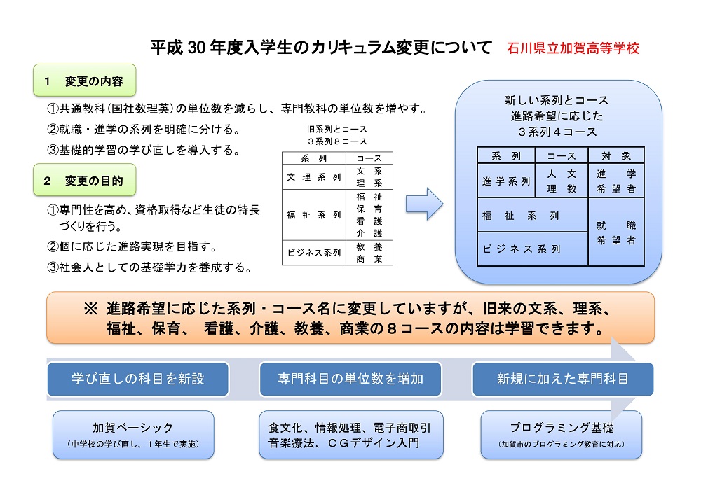 総合学科は、普通科及び専門学科と並ぶ第3の学科として、平成6年度(1994年度)から制度化されています。