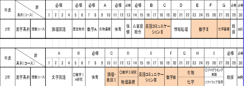 ※ 四年制大学への進学を考える場合はオレンジ色の科目を選択
