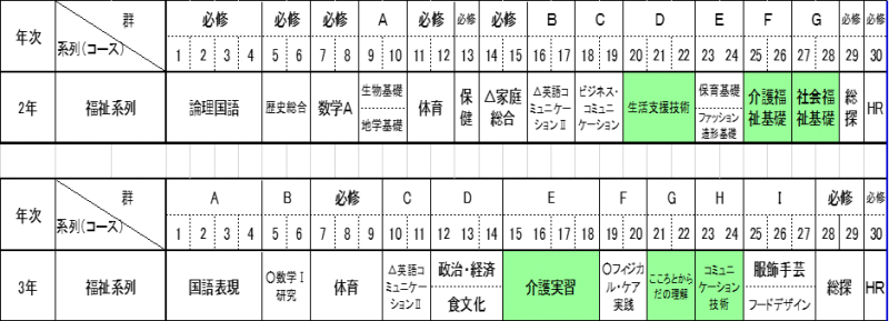※ 福祉系の大学・専門学校等への進学を考えている場合は青色の科目を選択