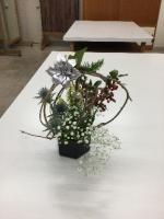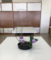 いつもの練習では一方向からのお花を生けているのですが、今回は全方向からのお花となりました。横広がりの形を作るのが難しかったですが、良い作品に仕上がって満足することができました。
