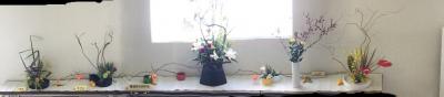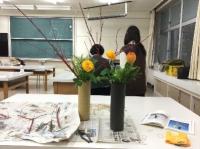 3月13日(水)は今年度最後の練習で、土佐ミズキ、黄スカシ百合、スプレーカーネーション、スターチス、ロべ(アレカヤシ)でした。しなやかなミズキの枝を生かして、黄色の百合が開いたときの形を想像して生けました。今回も春らしい作品になりました。