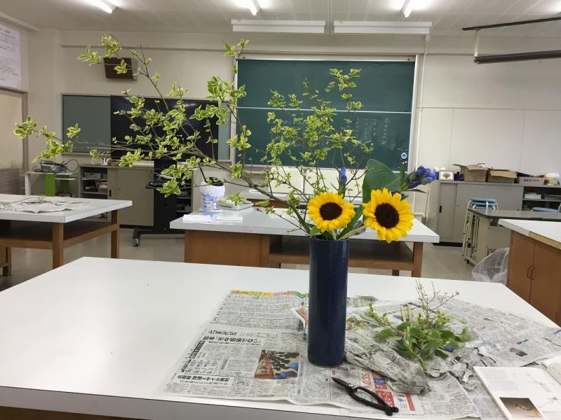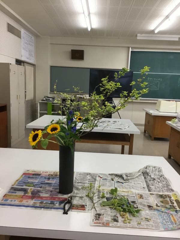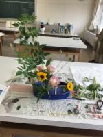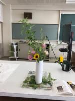 傾けて生けてそれを固定すること、存在感のあるヒマワリの扱いが難しかったです。