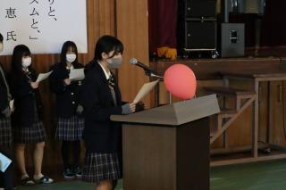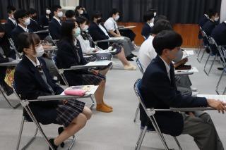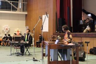 第一部で行われた講演会では、マリンバ奏者 亀井 恵 氏とハモンドオルガン奏者 今井 亮太郎 氏をお招きして、生徒の今後の人生につながる様々なお話を聞くことができました。講演の合間に素敵な演奏もしていただきました。生徒は興味深く聞いていました。
