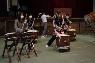 「日本の音楽」受講生徒による演奏です。     和太鼓部員による演奏です。