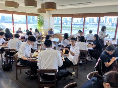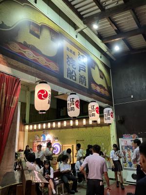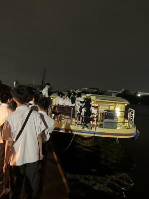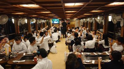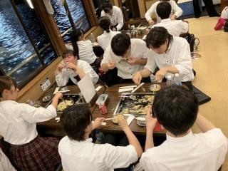 9/18(水)から3日間、2年生は待ちに待った「修学旅行」に出かけました。初日は新幹線で東京方面に向かい、上野駅到着後、各班に分かれ班別自主研修を行いました。夕食時に全員集合し、屋形船で綺麗なお台場の夜景を見ながら、もんじゃ焼き・お好み焼き・焼きそば・デザートもんじゃの4品をいただき、お腹いっぱいになりました。2日目も楽しみです!(旅行中はHPを毎日更新します。)