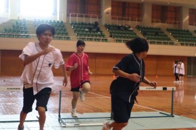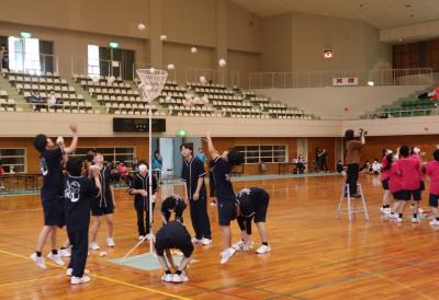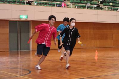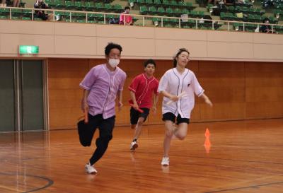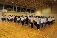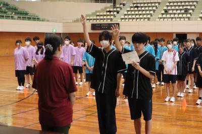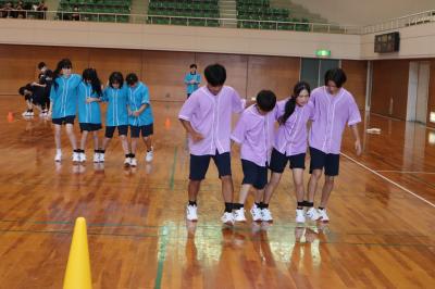 9/3(火)昨年と同様に加賀市スポーツセンターで「体育大会」を行いました。生徒達は、エアコンの効いた快適な室内で7種の競技をクラス単位で競い合いました。また、玉入れの競技ではPTAの方々にも参加していただきました。