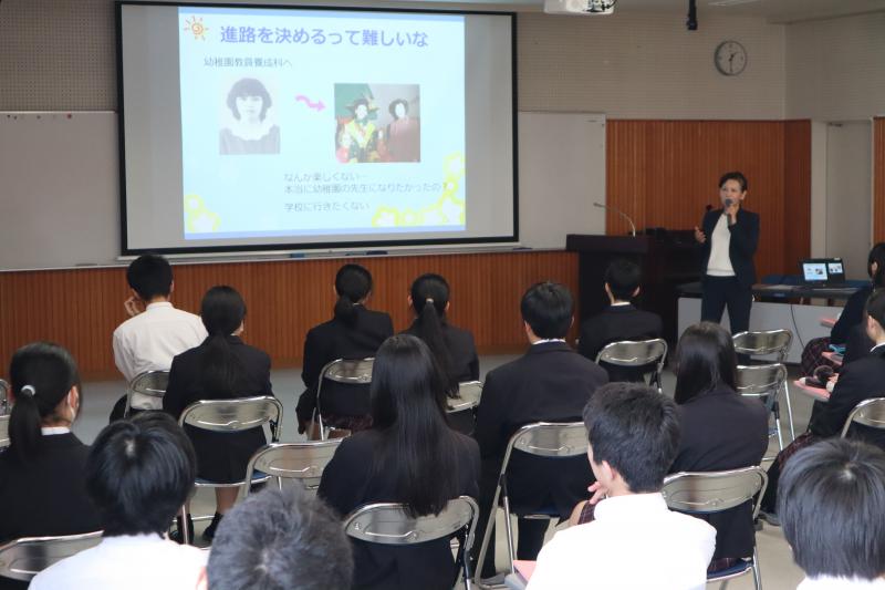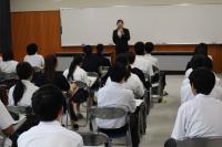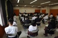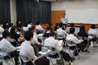 7/2(火)2年生を対象に「インターンシップ結団式」を行いました。7/3(水)から3日間、保育園、図書館、ホテル、福祉施設、商業施設、各種工場などでインターンシップ(就業体験学習)を行います。学校長、進路指導課、担任から2年生へ激励の言葉が贈られました。