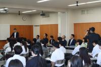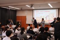 6/11(火)2年生を対象に、キャリア教育の一環として「建設業界説明会」を行いました。加賀建設業協会の方々から、建設業界の使命・役割及び仕事内容についての説明をお聞きしました。生徒たちは、能登半島地震復旧作業の動画を真剣な眼差しで視聴していました。また、ファン付き高性能作業着を試着し、あまりの涼しさに驚いていました。