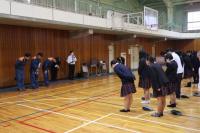 10/20(金)加賀市消防署の方にお越しいただき、2回目の避難訓練を行いました。地震発生後、1階実習室から出火するという想定の元、生徒たちは教室から体育館へ迅速に避難しました。消火器の使い方・救助袋での避難訓練は、今回雨のため実施できませんでした。