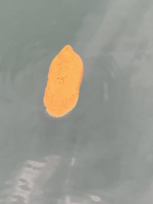 皆さんは下の画像が何に見えますか?落ち葉?それともゴミ?実は、魚の子供なのです。よーく見てみると上の方に顔を向けていて、下の方に尾ひれがあるのが分かります。おそらくマツダイの子供だと思いますが、見事に落ち葉に擬態していますよね。この写真は昨年の今頃に七尾の方で撮影したのですが、見事な擬態に驚いたのをいまだに覚えています。