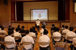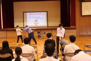 大聖寺警察署生活安全課の方から、ネットトラブルと護身術について、お話いただきました。