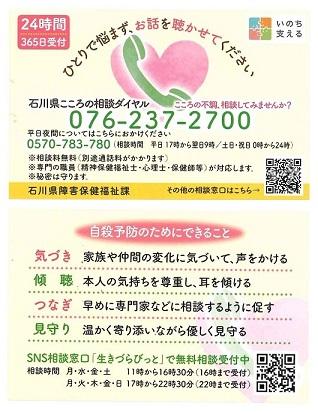 ・石川県こころの相談ダイヤル 076-237-2700