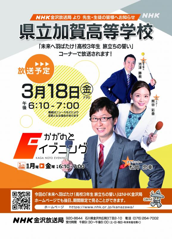 本校生徒がNHK「かがのとイブニング」に出演します!