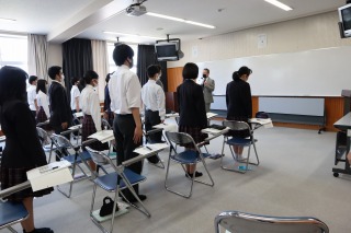 避難完了後は、校長先生から講評をいただきました。生徒は、真剣に耳を傾け、避難訓練の大切さを再認識しました。