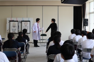 進学と就職の特徴や大学と専門学校の違いを劇で学習しました。