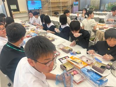 観光物産館では和菓子づくりを体験しました。みんな集中してつくっている様子が伝わってきます。