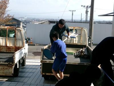 生徒たちはせっせせっせとゴミを運搬してくれ、トラックに積み込み、廃棄することができました。協力してくれた生徒の皆さんのおかげで体育館倉庫はすっきりしました。