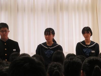 今年の入学式は、前期生徒会執行部の皆さんが「河北台中学校 校歌」を披露してくれました。