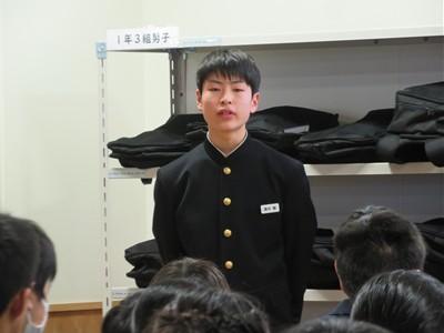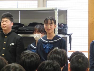 最後に、河北台中学校ジュニアボランティアサークル「Myan」のリーダー高井くんから「Myan」の活動内容を説明し、加入者を募集しました。ジュニアボランティアサークルは、部活動をしながらでも活動できるボランティアサークルです。メンバーの多くはいろいろな部活動に所属しています。ぜひ多くの加入者をお待ちしております。