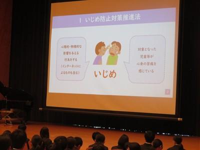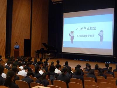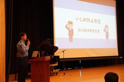 5月1日(木)全校集会の中で、津幡警察署員を講師にお招きし、「いじめ防止教室」を行いました。