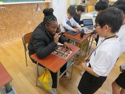 小学5年生でこんなにも英語でやり取りができるのかという驚き以上に、ほぼ全員が躊躇なく外国人に話しかける姿にさらに驚かされました。「すごいなぁ」とただただ感心させられました。授業終わりに、シャミーク先生も、児童の頑張り、積極的な活動の取組ぶりを褒めていました。そのまま、外国人との英語コミュニケーションに対する気持ち(自信)や憧れを持ち続けていってほしいなと思いました。