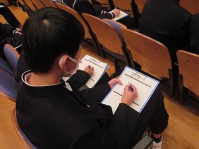 生徒たちはとても興味津々に耳を傾けていました。いつもお世話になっている担任の先生方の、これまでの生き方、うれしいことや楽しいことにまつわる体験、先生方の生き様を伺い知ることができました。普段からは知ることのできないお話に、真剣に、前のめりになってお話を聞いていました。