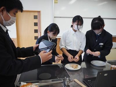 料理をしたことがないと言っている男子生徒、よくお家で料理をしている女子生徒など様々いましたが、最後はみんなで美味しくいただきました。みんな「おいしい」を連発していました。