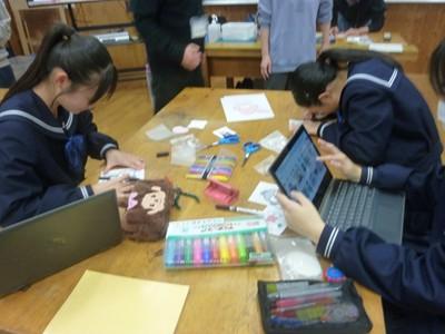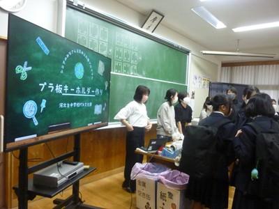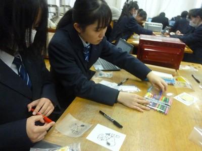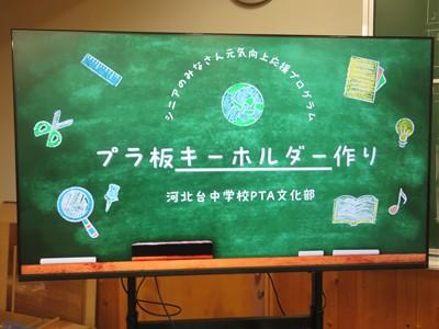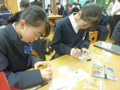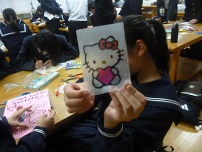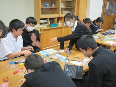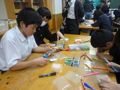 部活動のない26日(水)放課後、希望生徒が参加した「プラ板キーホルダーづくり教室」が行われました。約35名の生徒が参加し、1人3個のキーホルダーを作りました。1つは自分用に、2つは地域の高齢者へのプレゼント用に作りました。