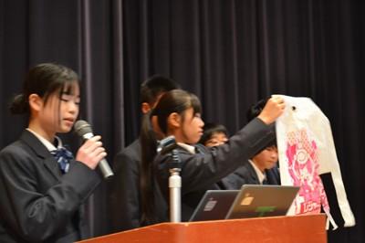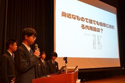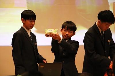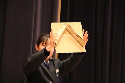 28日(金)午後、1年生が防災学習の発表会を行いました。保護者の参観のもと、すべてのグループが堂々と発表していました。説明・発表だけでなく、クイズあり、実験・実演ありのプレゼンでした。見ている側も楽しく、とても勉強になる発表会でした。