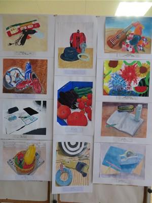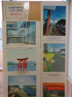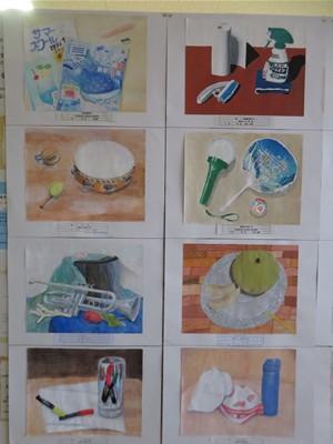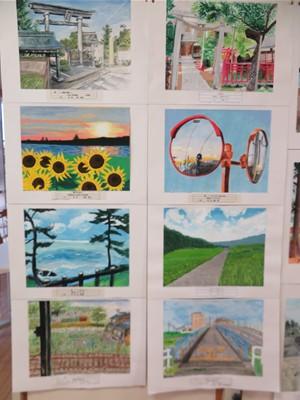 その作品は、1年生は静物画、2年生は風景画を描き、郡市内6中学校の優秀作品です。
