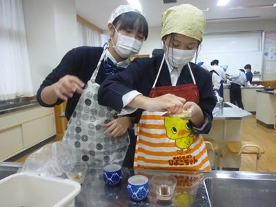 小学校でも体験した生徒も多くいて、手慣れた感じで、和気あいあいとした雰囲気の中、楽しそうに作っていました。手づくりするのがとても好きな生徒ばかりでした。PTA文化部の皆さんは、主にトースターを使って焼き係を担当してくださいました。生徒たちは、焼きあがった後の完成版を見て、満足げな表情をしていました。