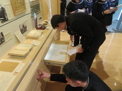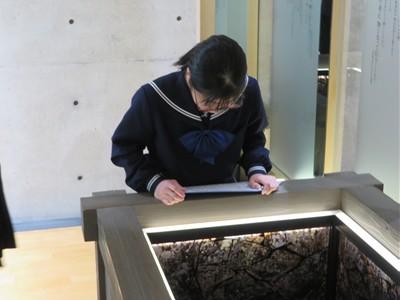 写真からもわかるように、生徒たちからは、真剣に話を聴き、食い入るように展示品を見つめ、何かを学び取ろうとする姿勢が強く感じられました。今日、学んだことが今後の考え方やより良い生き方につながっていってくれることを期待します。