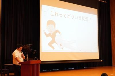 危険性を十分に理解したうえで、危険な誘いには強い気持ちで断る勇気を持ちましょう。健全な生活を送るため、健康な体をつくるため、正しい知識を持ち、正しい判断をしてほしいと思います。(会場が暗く、画像がはっきりせず、ご容赦ください)